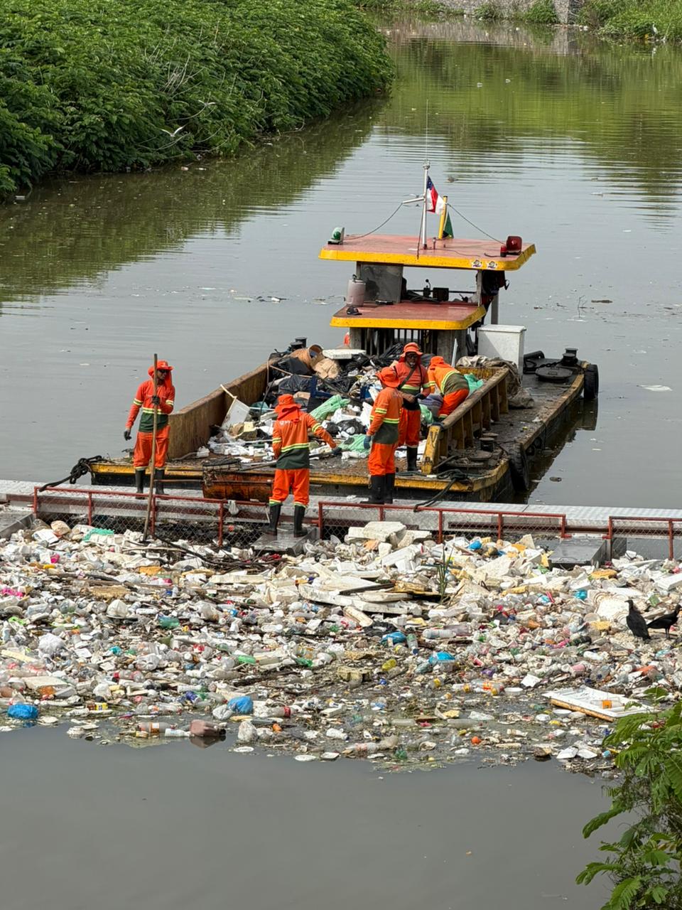 Já na primeira limpeza, a 14ª ecobarreira confirma seu papel estratégico como instrumento de proteção ambiental, uma barreira física que impede que toneladas de resíduos urbanos avancem pelas águas até o rio Negro.