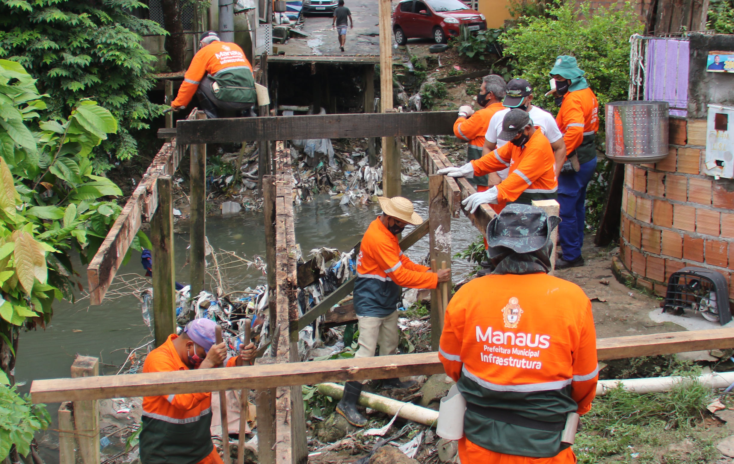 A Prefeitura de Manaus, por meio da Secretaria Municipal de Infraestrutura (Seminf), concluiu na tarde desta sexta-feira, 30/9, a construção de uma nova ponte de madeira, com cerca de 30 metros de extensão, localizada no conjunto Promorar Dom Bosco, no bairro Alvorada, zona Centro-Oeste da capital. O equipamento público era uma solicitação da comunidade.