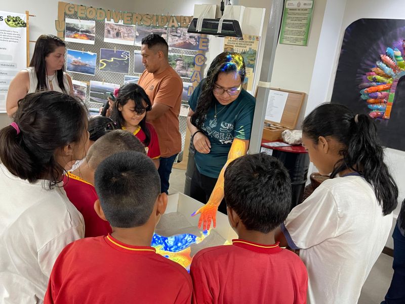 Em alusão ao Dia do Geólogo, celebrado em 30 de maio, estudantes do 6º ano da Escola Municipal José Garcia Rodrigues, localizada no bairro Jorge Teixeira, zona Leste, participaram, nesta terça-feira, 3/6, da exposição “A Geologia no Bem-Estar da Humanidade”, promovida pela Prefeitura de Manaus, por meio da Secretaria Municipal de Educação (Semed). A atividade aconteceu no Espaço da Cidadania Ambiental (Ecam), no Manauara Shopping, sob coordenação das Ocas do Conhecimento Ambiental (Ocas), setor vinculado à Semed, em parceria com a Vara do Meio Ambiente do Tribunal de Justiça do Amazonas (Vema/TJ-AM).