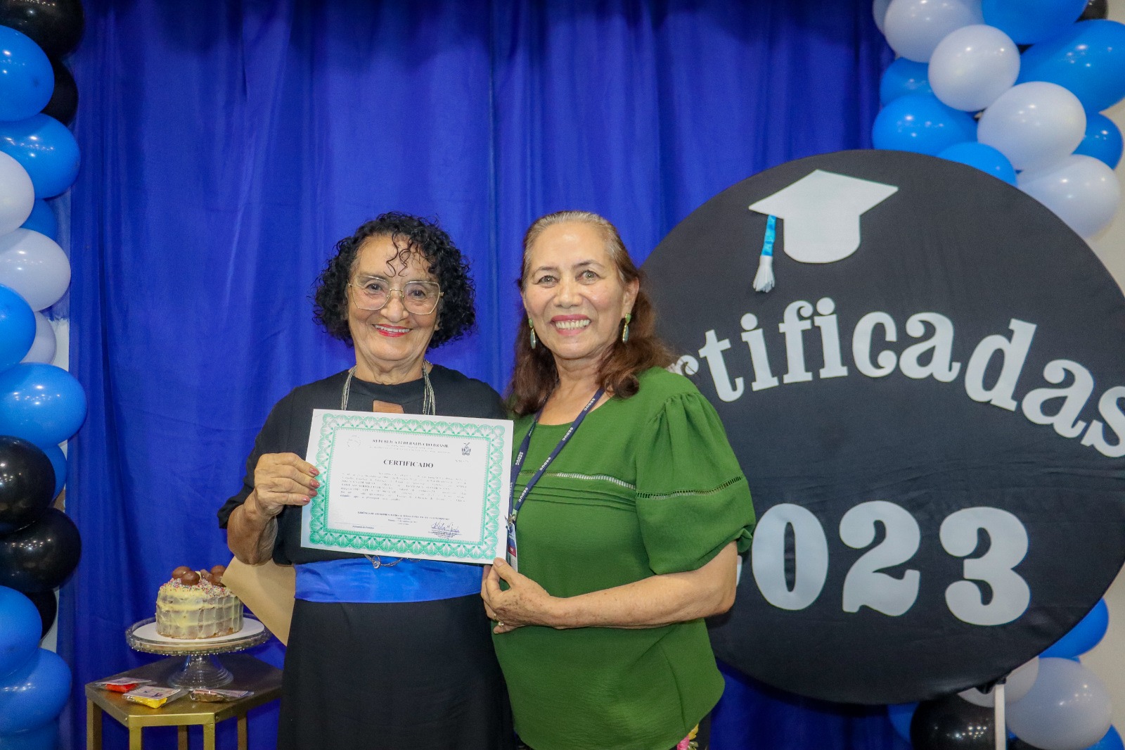 Maria conta que precisou interromper os estudos em 1960 e por muito tempo acreditou que não teria a oportunidade de retornar. Nesta quinta-feira (30/10), ela estava no grupo de 10 mulheres que participou da cerimônia de formatura para a conclusão do ensino Fundamental e Médio, realizada no Pronto Atendimento ao Cidadão (PAC) Compensa, zona oeste de Manaus.